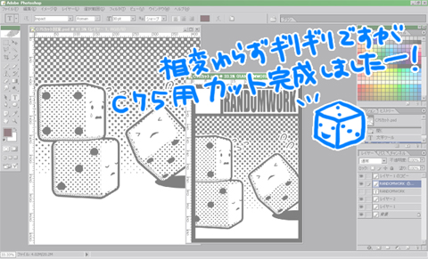C76では例年通りのサイコロ君じゃなくて、次回作のキャラと作品内容を